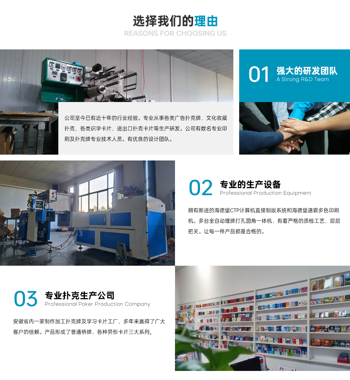 合肥采菊包裝有限公司 INTRODUCTION 創(chuàng)建于2011年,公司位于合肥廬陽(yáng)工業(yè)園區(qū)。公司主要經(jīng)營(yíng)項(xiàng)目:撲克印刷、學(xué)習(xí)卡片和文化收藏?fù)淇伺频取6嗄陙?lái),公司一貫倡導(dǎo)“團(tuán)結(jié)、務(wù)實(shí)、進(jìn)取、創(chuàng)新”的企業(yè)精神,以市場(chǎng)為導(dǎo)向,以質(zhì)量求生存,以技術(shù)...
